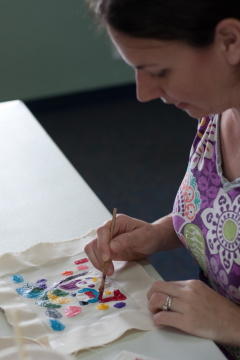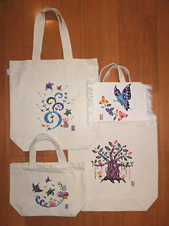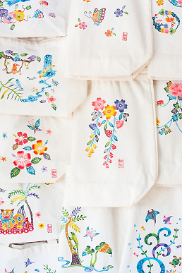 Choose the design and the painting item on the day. After choosing them, you can paint it with your favorite color, so you can make the original Bingata items. You take your work home on the day. And after a few days you will do the finishing work to drop the glue.