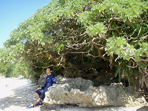 その木陰で昼寝をしたり、本を読んだり、海を見ながらのんびり過ごす時間に今まで感じたことがない、ゆったりと流れる島時間を感じました。 それ以来「モンパノキ」は、僕にとってゆったりした空間を連想させるものになったのですが、僕が行うツアーでも皆さんがゆったりとした気分で自然に触れ合 えればいいなと思い、この名前に決めました。 |