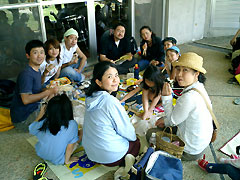 ![]() ゴミ拾いも終わって、みんなでお昼ご飯です。 ここで遅れて参加したかなこさんと井上さんファミリーとも合流! 3人とも弁当だけでなく、ちゃんとゴミ拾いはしたそうですが 証拠写真がありません |