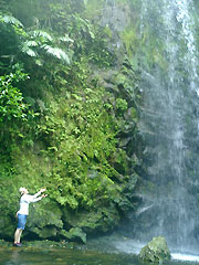 ![]() 滝と千秋さん。 雄大な滝とやんばるの空気に気分爽快! |