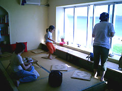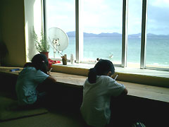 クリーンアップ後は、キヨちゃんが4月末にオープンさせた カフェ&小宿「なごみ家」になごみに行きました。 海を一望できるテラス&座敷が素敵なとってもなごめる 空間です。 |