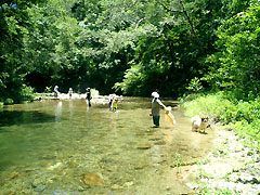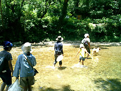 | 日時:2004年6月26日(土) 場所:源河川(名護) 参加者:井上さんファミリー(お父さん、まーちゃん、そのこちゃん、まりこちゃん、犬のもーちゃん)、じゃまこさん かなこさん、Ryuの7名&1匹 |