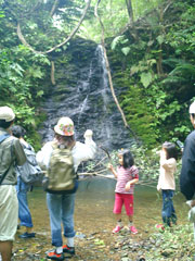![]() 滝に到着! 突然ぱっと開けた景色にしばし見とれるみんな |