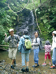 | いよいよ後半は、みんなでゴミを拾いながら歩きます。 今までにこの沢を歩くたびにゴミ拾いをしていたので、目立つ場所のゴミは あまりなかったのですが、ゴミを意識して歩くと隠れた場所にゴミがたくさん! これがみんなの気持ちに火をつけました。 |