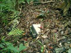 ![]() 上の道路から投げ捨てられたゴミは 空き缶やペットボトルだけではありません。 茂みの中にはバッテリーも! 一体誰がこんなことを… 重いけど頑張って運びましょう! |