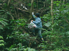 ![]() 道から落とされたゴミは、沢の上の木々に たくさん引っかかっていました。 心無く捨てられたゴミを見ると、心が熱くなって みんなで拾える限り拾いました。 写真は雅美さん とっても頑張っていただきました |