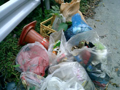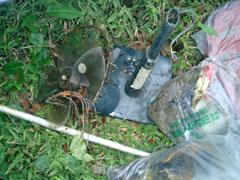 ![]() 内訳は 空き缶、空き瓶、ペットボトル、弁当空き箱、 カップめんのカップ、ビニール袋、ビニール紐、 紙おむつ、生ゴミ、ビールケース、三角コーン、 金属の棒、段ボール、ガラスや陶器の破片… |