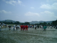 | 日時:2004年4月18日(日) 場所:佐敷町 佐敷干潟とその周辺 参加者:かなこさん、井上さんファミリー(まーちゃん、そのこちゃん、まりこちゃん)、 島袋さんファミリー(お父さん、みさえさん、あみちゃん、ちこちゃん)、カニちゃん、 キヨちゃん、Ryu、千秋さん(しゃかり)、の12名 ※今回は「コスモ アースコンシャスアクト」のクリーンキャンペーンに参加しました。 |