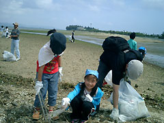 | 日時:2004年4月18日(日) 場所:佐敷町 佐敷干潟とその周辺 参加者:かなこさん、井上さんファミリー(まーちゃん、そのこちゃん、まりこちゃん)、 島袋さんファミリー(お父さん、みさえさん、あみちゃん、ちこちゃん)、カニちゃん、 キヨちゃん、Ryu、千秋さん(しゃかり)、の12名 ※今回は「コスモ アースコンシャスアクト」のクリーンキャンペーンに参加しました。 |