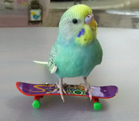 | 小鳥グッズ部門、癒やし部門担当 2017年の4月からモンパの木にやってきたセキセイインコ。現在は紅型キジムナー工房の小鳥関連部門「コトリンチュ」の社長を務めています。 沖縄の海のように鮮やかな羽の色のインコで、オフにはスケボーやボウリングで楽しんでいます。おしゃべりも得意で沖縄の言葉も使うことができます。 お店が混んでいないときは店内にいることもありますので、 その際は声をかけてくださいね。 特技:スケボー・ボウリング ハッピーの動画 |
