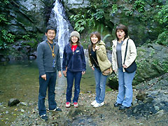芭蕉布会館を出たあと、近くにある七滝に向かった。この滝の側には御嶽(うたき)もあり、滝自体もダイナミックさはないが、不思議な自然の空気を感じる滝だった。「ぶながやの里」でもある村だけに、この付近にはぶながやがいるかもしれないとさえも思えた。しばらく滝の側でやんばるの森の空気を胸いっぱいに吸い込みながら過ごした一行は、七滝で身も心も清められた気持ちになった。これから長い旅が無事に進んでいくように心で誓ったRyuであった。