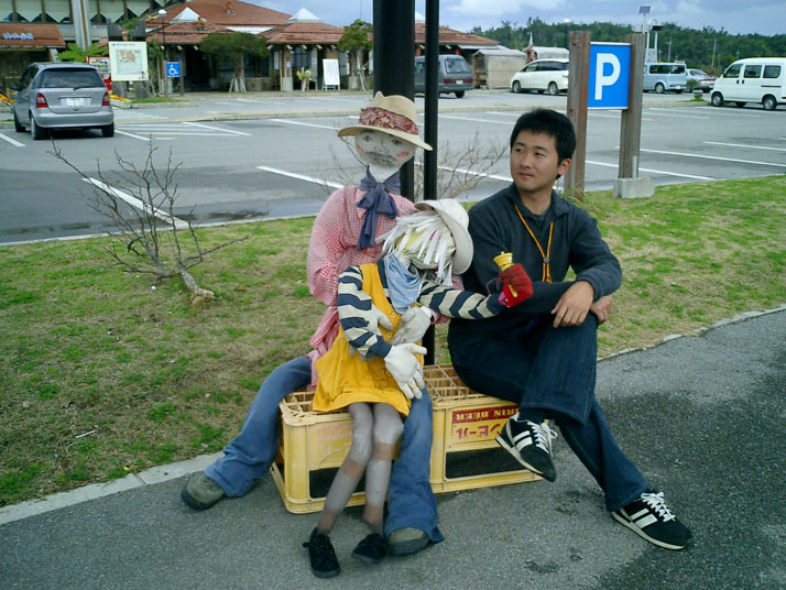 今日の道の駅付近は人の姿は目立つのだが、不思議なことに気配がしない。農作業姿の村人達は皆動かない。よく見ると(どう見ても)、かかしではないか!次の週からこの国頭村で「かかし祭り」が行われるので、その宣伝をかねたかかしのようだ。かかし祭りは去年から始まったもので、いろいろなユニークなかかしが登場するようだ。時間があれば是非また国頭村に来て見たいと思うRyuであった。
