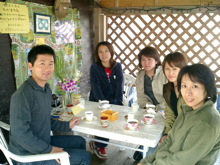 安波を後にし、いよいよ今回最後の目的地、東村に入った。東村はパイン、ツツジそしてマングローブの森などを生かしたエコツーリズムなどで知られる。時計はすでに十五時を回っていたので、一行は茶屋で休憩をとることにした。ちょうどヒロコーヒーファームにたどり着いたので、三時茶はここでとった。ここは裏にコーヒー畑があり、ここで収穫されたコーヒーを飲むことができるのだ。また、コーヒー木のオーナーになることもできる。手作り感溢れる建物や家具類に感心しながら、一行はやんばるで生まれたコーヒーを味わいながら、のんびりと過ごした。コーヒーは1杯分の料金で数杯嗜むことができる。やんばる路を旅する際はまた立ち寄りたい茶屋であった。このコーヒーファームには、奥で出会った子犬にそっくりの犬もいて一行は一瞬目を疑った。今回の旅は人との出会いよりもむしろ犬との出会いが印象に残る旅だった。それほど道中に人が少なかった。
