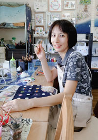 | ■ 東京でのOL生活後、沖縄病が高じ、沖縄に引越しました。 ■ 大好きな沖縄のためになるような仕事がしたい、沖縄のすばらしい伝統文化を多くの人に 伝えたい、との思いから得意の絵画が生かせる紅型を学ぶ事を決意。 ■ ただ今、キジムナー工房にて紅型製作と紅型染め体験を実施中です。 ■ エコツアーガイド自然体験モンパの木を主宰する主人と共に、やんばるの自然をモチーフにした 紅型を制作したり、エコツアーと紅型体験をセットにしたツアーを行っています。 |